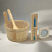 • Complete traditional accessories including sandglass, thermometer, bucket, and scoop