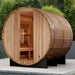 Transform your outdoor space into a luxurious wellness destination with the Golden Designs "Arosa" 4-Person Barrel Traditional Steam Sauna (GDI-B004-01). This beautifully crafted barrel sauna combines classic aesthetics with modern features, creating the perfect retreat for relaxation and rejuvenation right in your backyard.