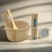 - Traditional accessories including sandglass, thermometer, bucket, and scoop