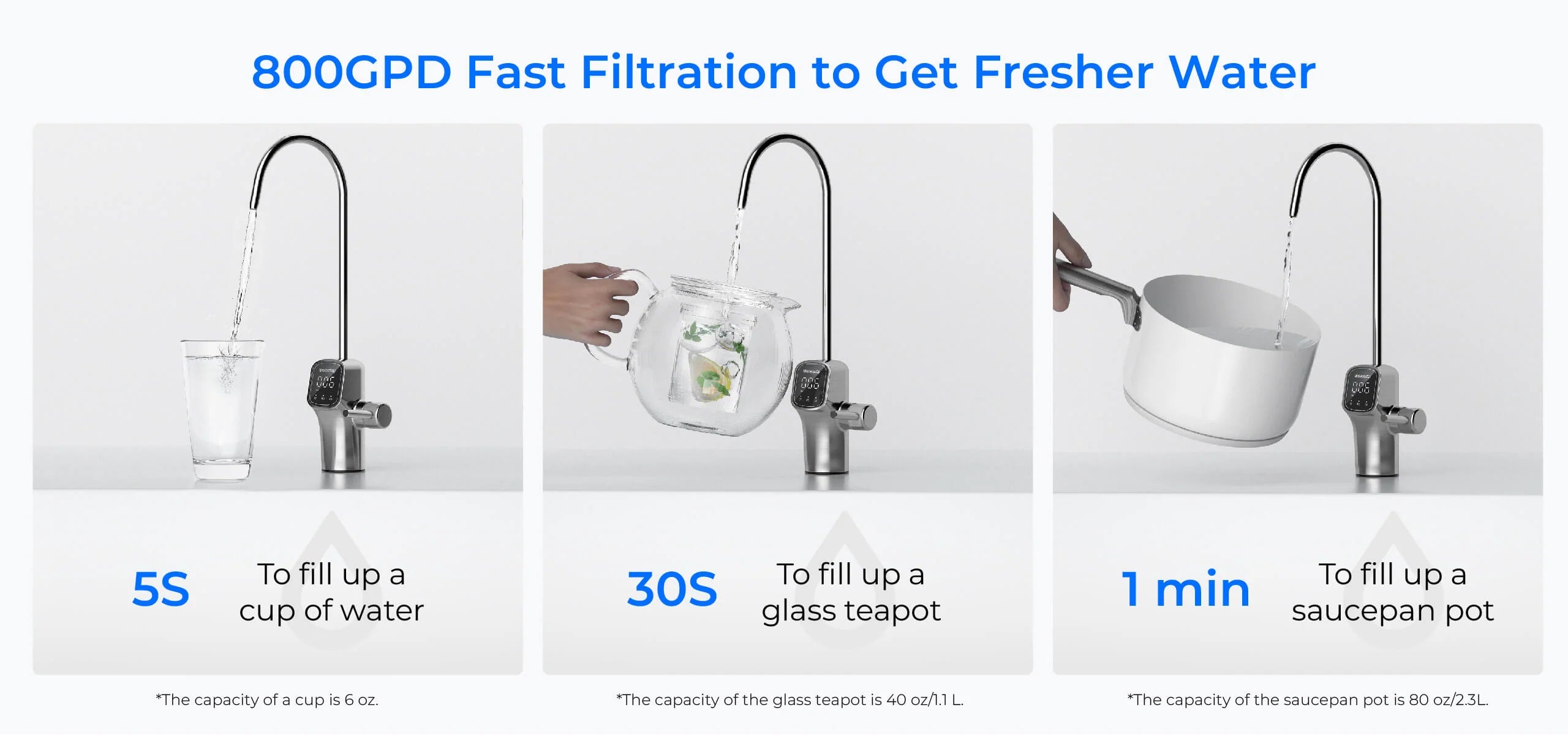 | Filter Lifespan | F1A-12 Mths F2-6Mths F3-24 Mths | F1A-12 Mths F2-6Mths F3-24 Mths | Filter lifespan & TDS & Temperature adjustment | Filter lifespan & TDS &Water volume & Water temperature |